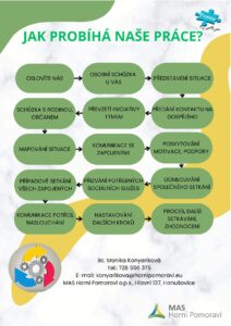 metodou case managementu a realizuje případová setkání všech zapojených aktérů. Poskytuje pomoc