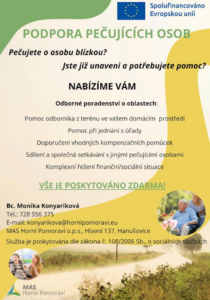 odborné poradenství a podporu neformálně pečujícím na území Hanušovicka a Starého Města.